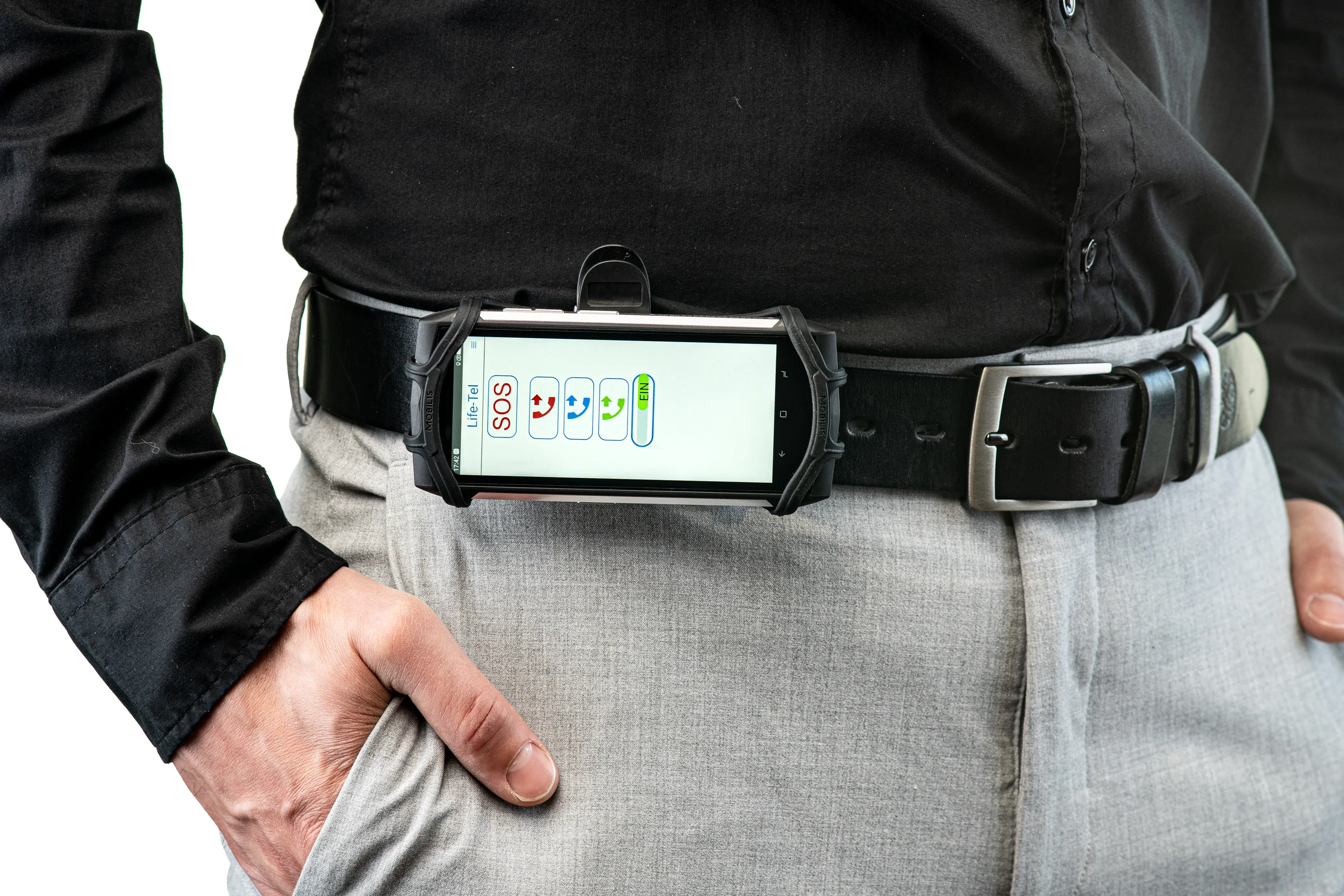 Das mobile Personen Notsignal Gerät Life Tel 5 Mini ist Im Vergleich zum Life Tel 4 und 6 L deutlich schmaler und kompakter in seiner Ausführung. Es ist daher für Anwendungen geeignet, für die keine besondere Strapazierfähigkeit des Smartphones erforderlich ist.